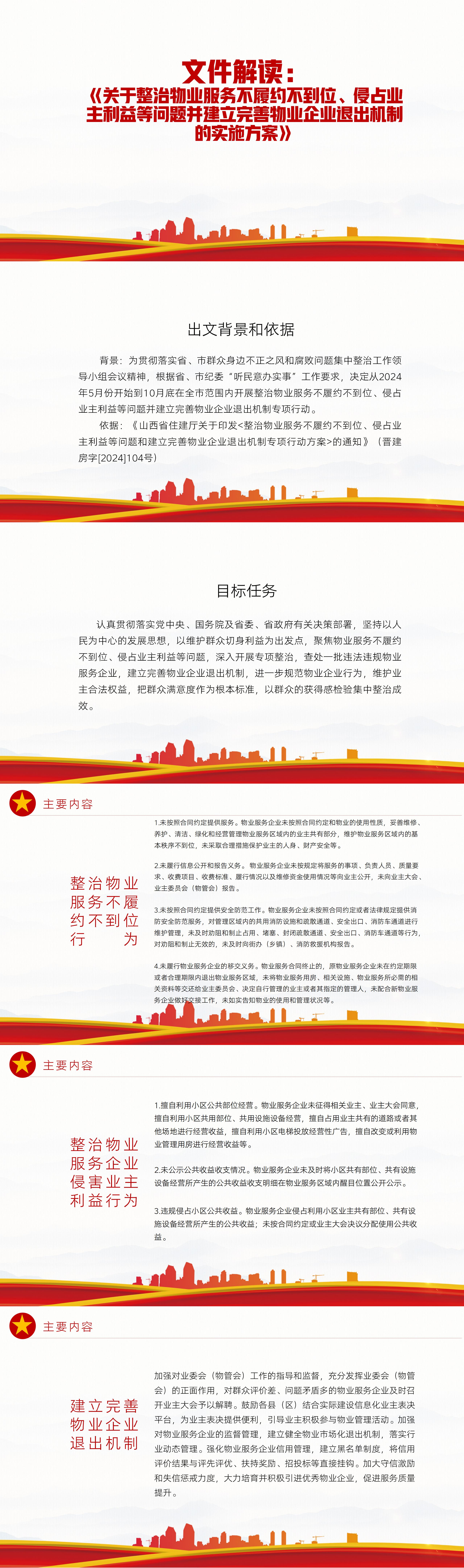 原文链接:关于整治物业服务不履约不到位侵占业主利益等问题并建立完善物业企业退出机制的实施方案